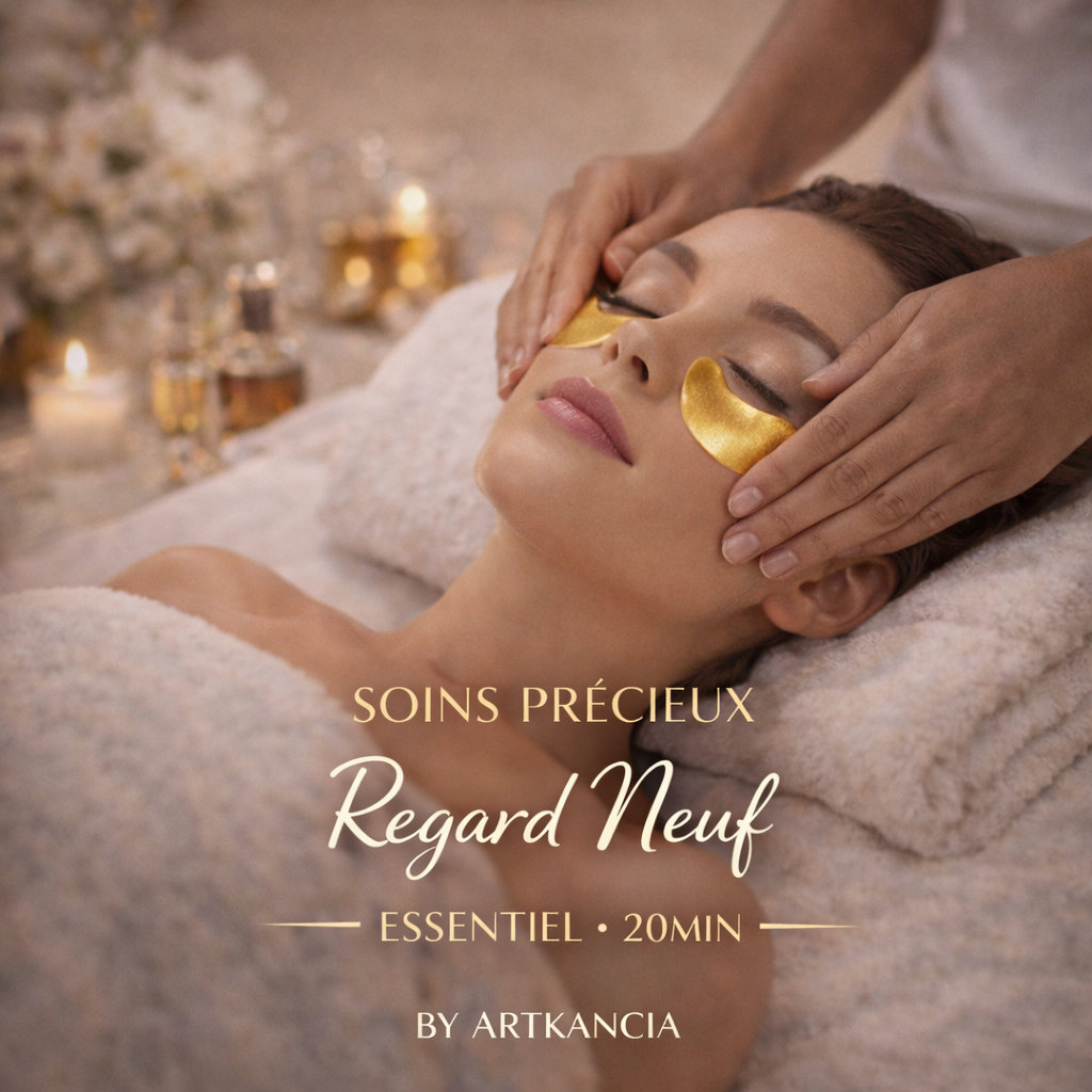 Le soin Contour des Yeux – Regard Neuf agit sur les cernes, poches et ridules grâce à des gestes précis et des actifs adaptés. Il permet de décongestionner, lisser et rafraîchir le regard. Résultat : un regard reposé, lumineux et visiblement rajeuni.