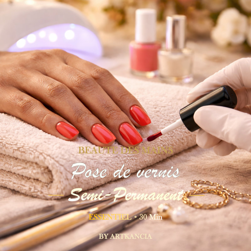 Le Semi-Permanent ArtKancia est une pose de vernis longue durée permettant d’obtenir des ongles nets et brillants pendant plusieurs semaines.